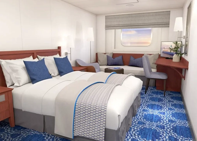 | XBO - Kajuta s oknom Cosmos / obmedzený výhľad 14 m². Neotvárateľné okno s obmedzeným výhľadom. 6,7. paluba. Max 4 osoby. | 1 198 € 599 € za osobu | ||