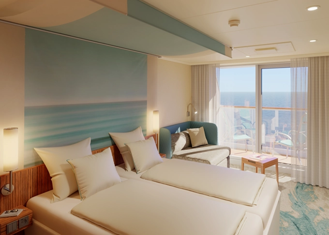 SD - Junior Suite PREMIUM od 24 m² + balkón 10 m². 7,8,9. paluba. Max 4 osoby. Cenový model Premium + výhody Junior Suite. 4 530 € 2 265 € za osobu