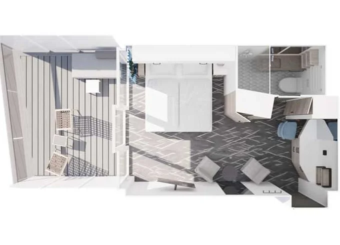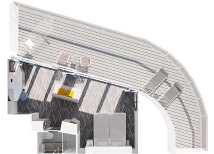 | VEKO - Kajuta s terasou 20 m² + balkón 13 m² so stoličkami a váľandou. 15. paluba. Max 2 osoby. | 4 528 € 4 528 € za osobu | ||